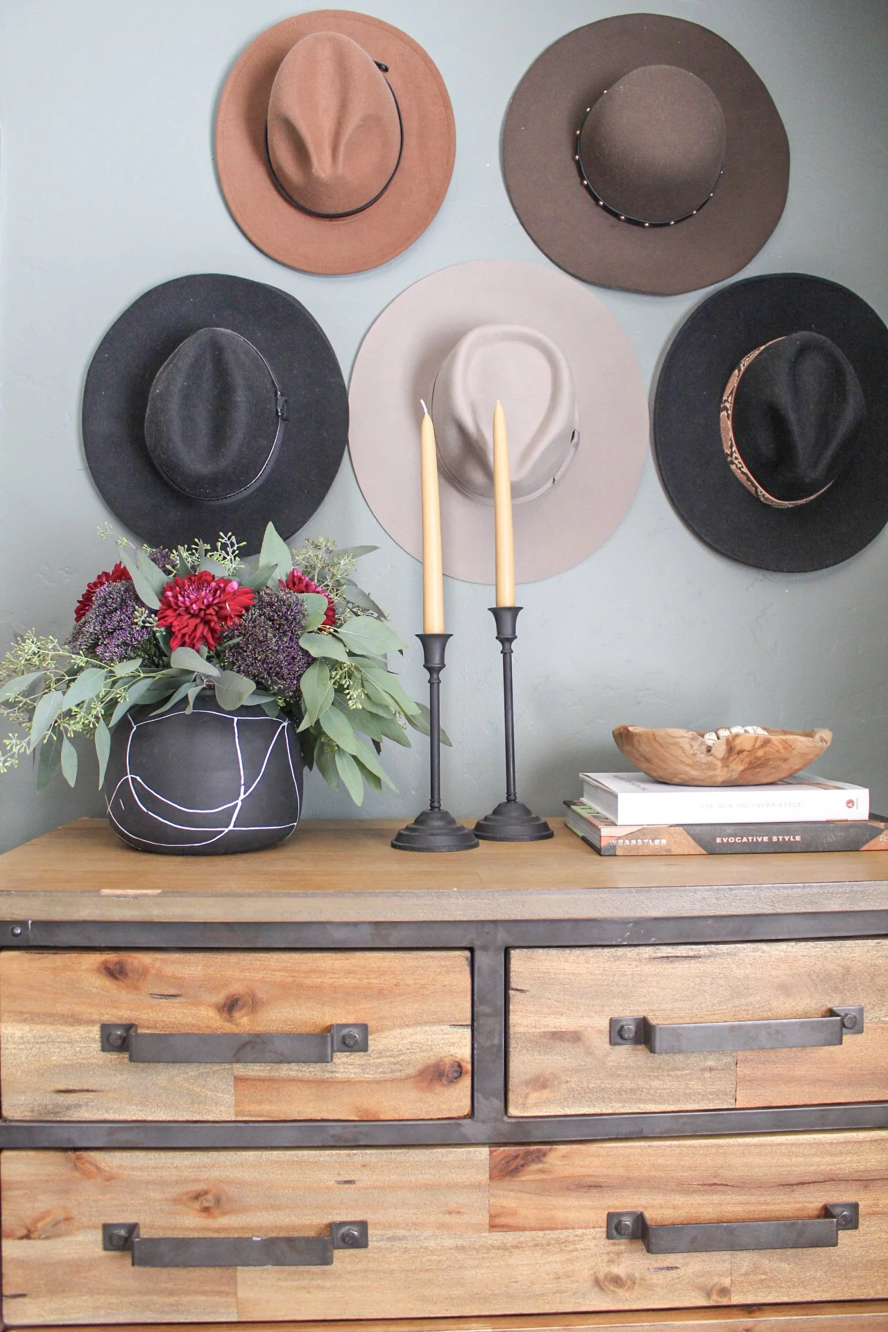 A modern farmhouse design with rustic touches and vintage accessories. We paired reclaimed and distressed furniture with cool pops of green and blue. We pulled a lot of accessory inspiration from the client’s hobbies and interests in a way that complimented the design and felt like home.